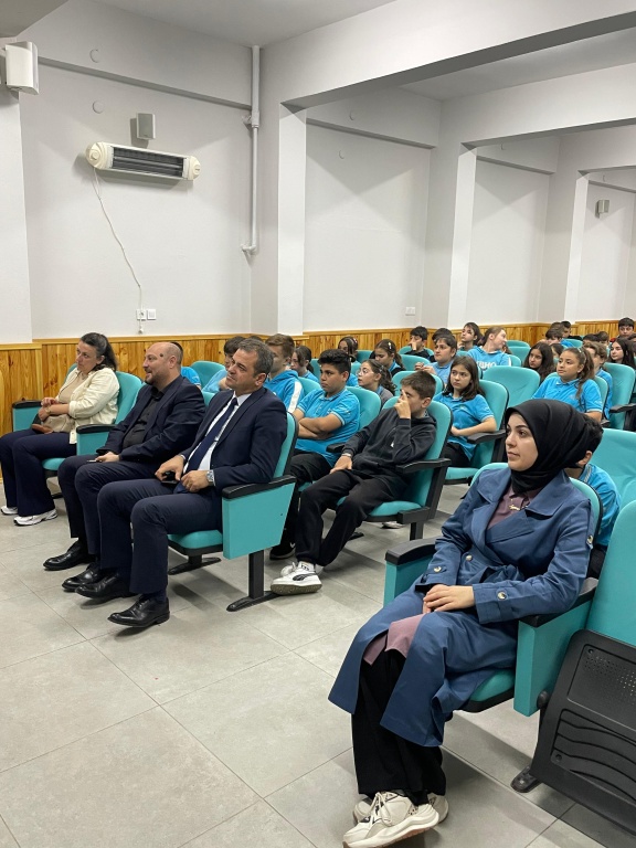 İlçe Milli Eğitim Müdürümüz Sayın Hidayet GÖKTAÇ, İlçe Milli Eğitim Şube Müdürü Sayın Erkan Can ile İl Milli Eğitim Ar-Ge Birimi öğretmenleri Sayın Emine EREN ve Sayın Nihan ÇOLAK KOPARIR’ın da katıldığı söyleşide Dünya Şampiyonu Esma Nur, öğrencilerimize başarıya giden yolda yaşadıklarını anlatarak; belirlenen hedeflere ulaşabilmek adına neler yapılabileceği hakkında bilgiler sundu.